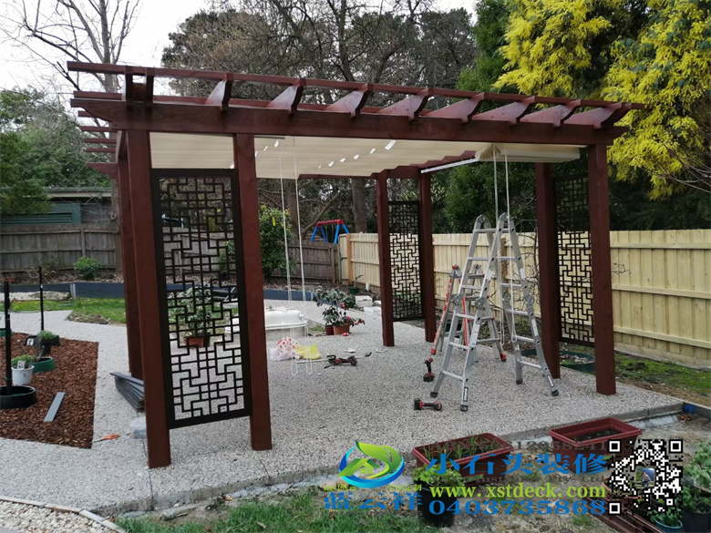 Melbourne Chinese style gazebo with retractable sunshade.
