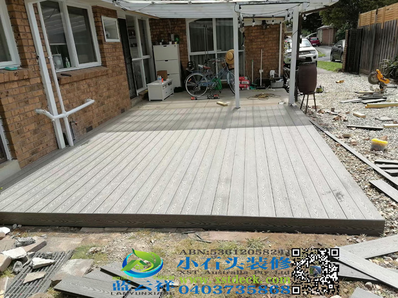 Australia, Melbourne plastic wood 140X22 imitation wood grain gray white decking, no screws on the front 3.65M