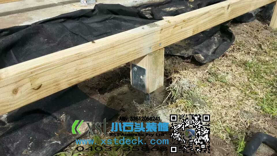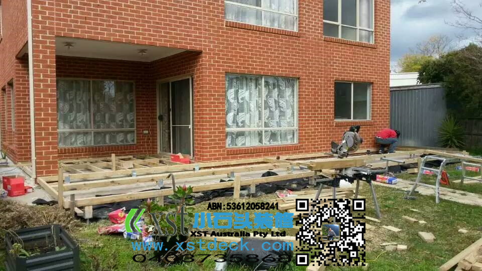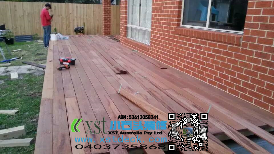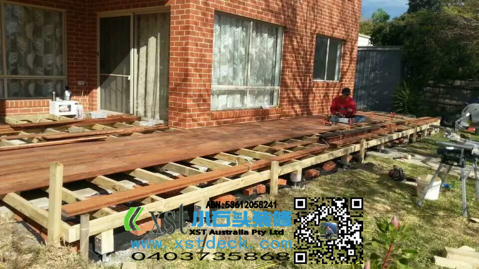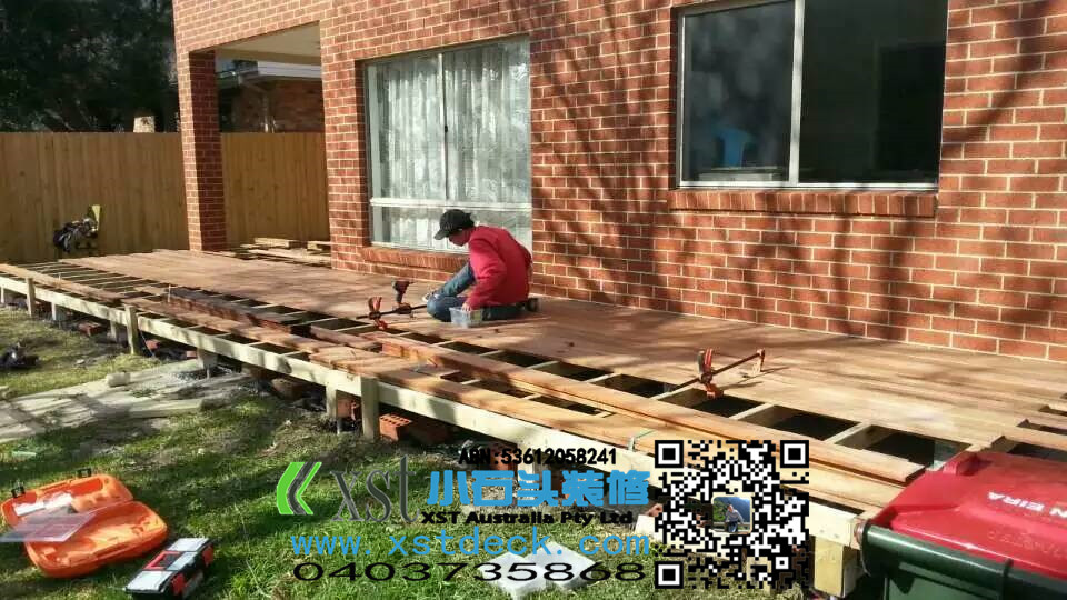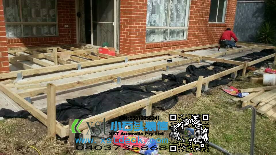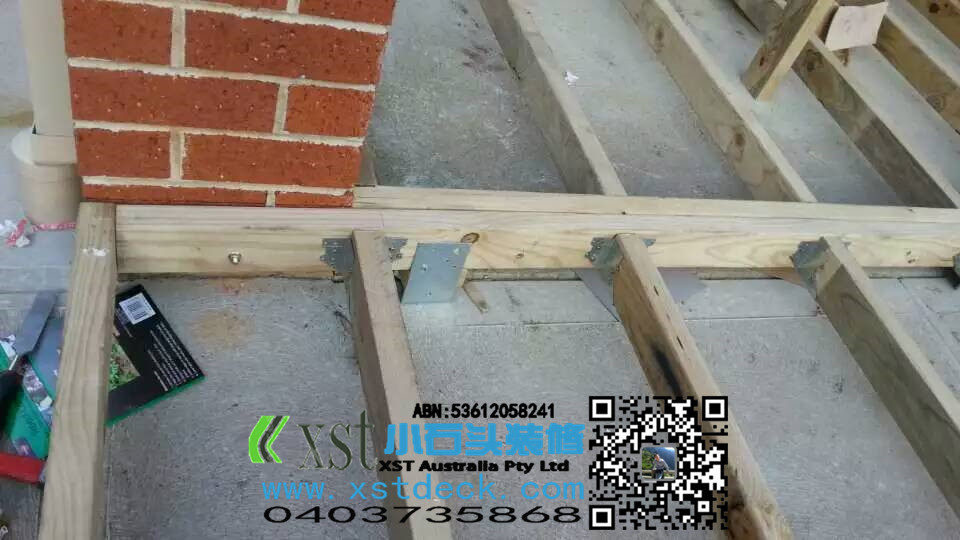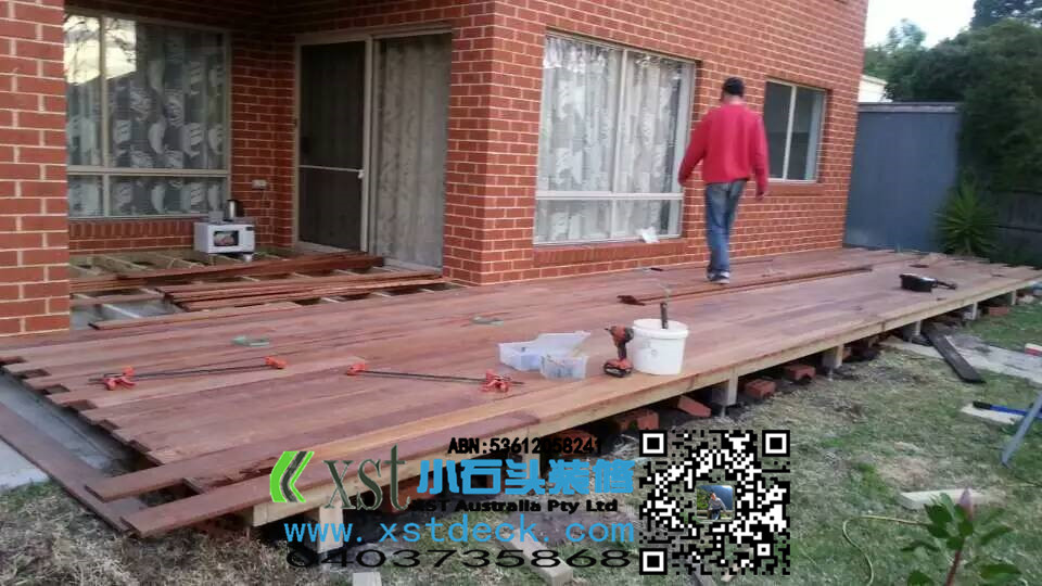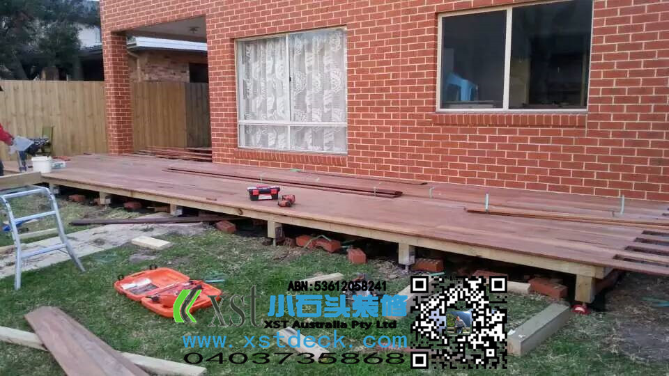 50平方decking工程努力中,140面板,全铁甲角架空。。帽边设计。。