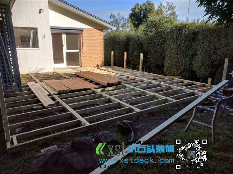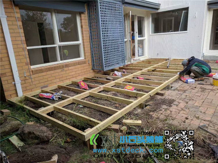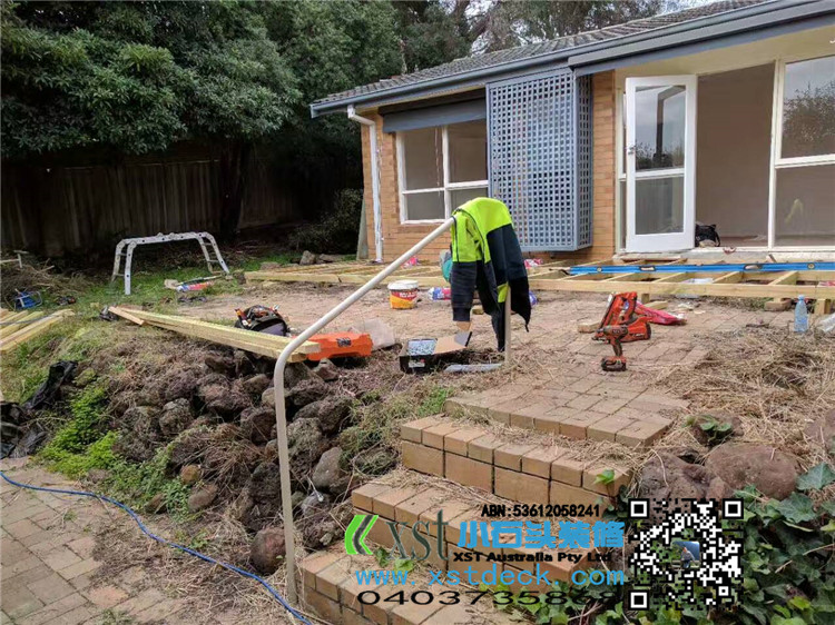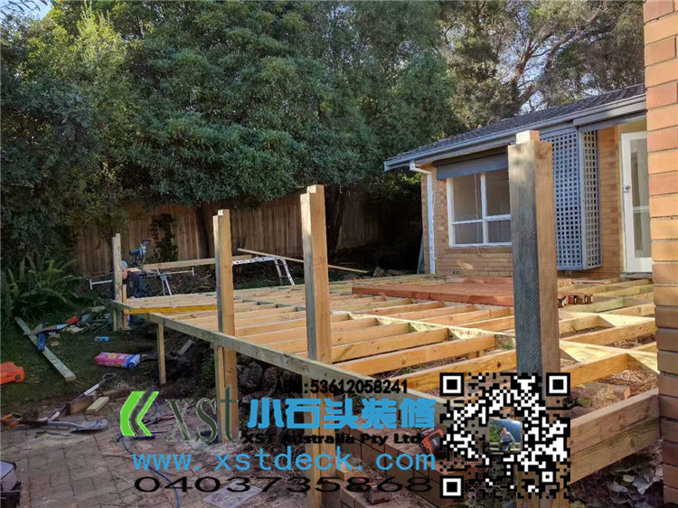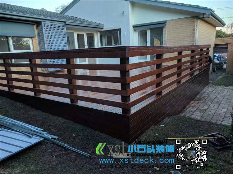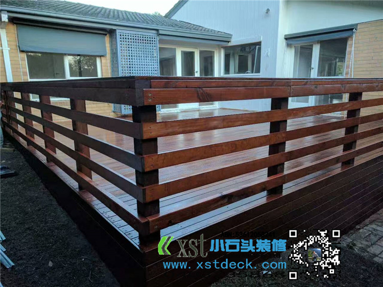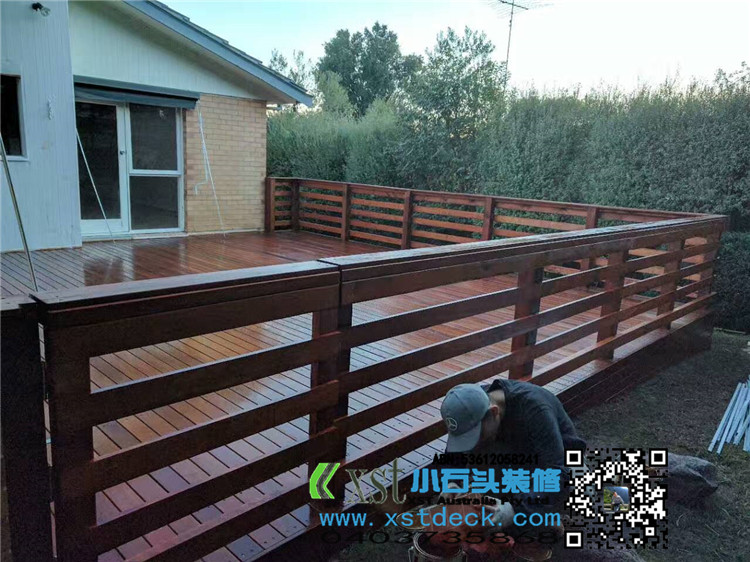 墨尔本 户外地板 merbau decking 7.5*6.5 侧面1米高decking板封边,横向护手围栏,140*19merbau 面板盖边