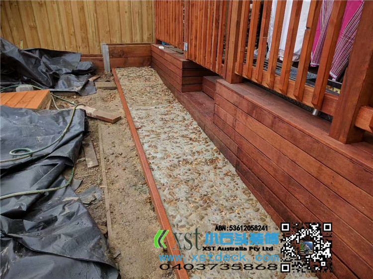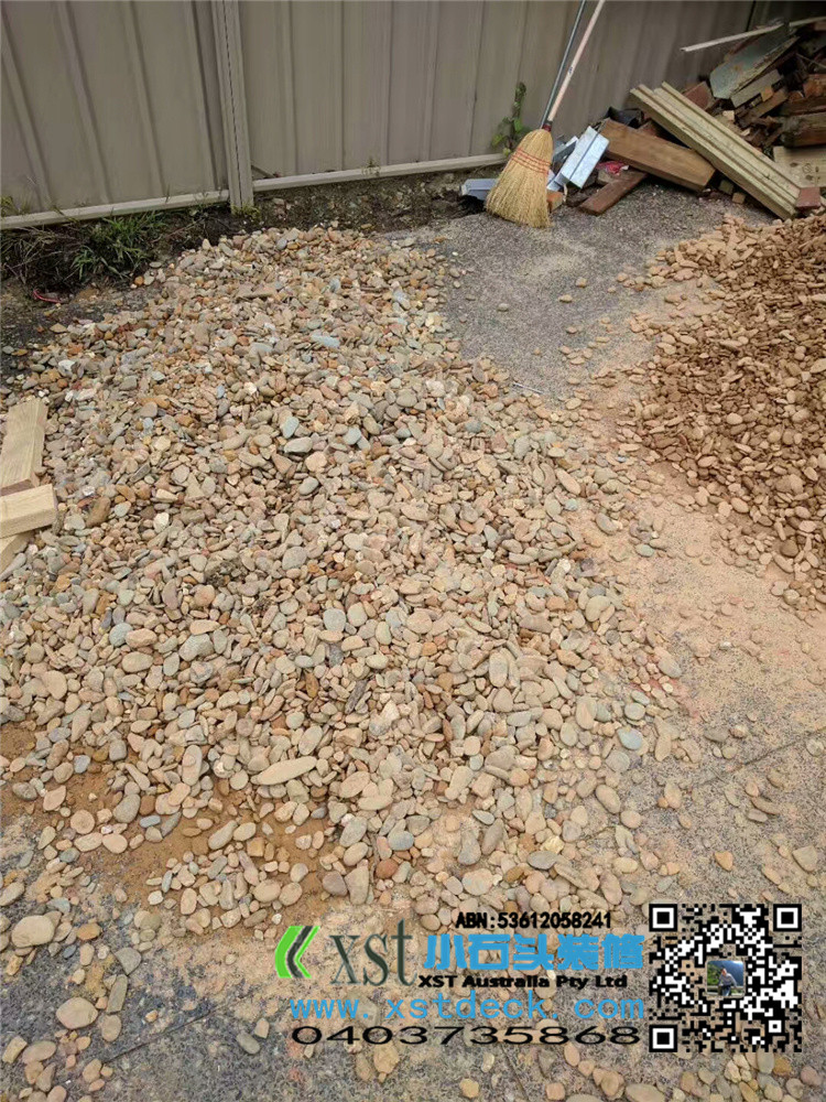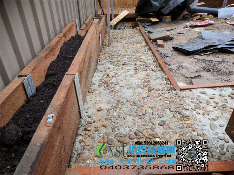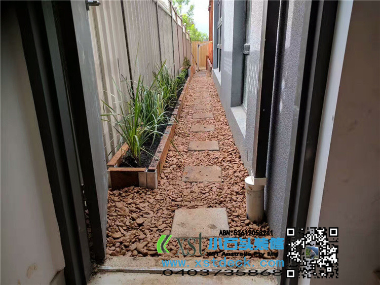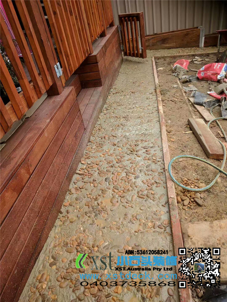墨尔本 花园鹅卵石 水泥鹅卵石 decking色木框包边