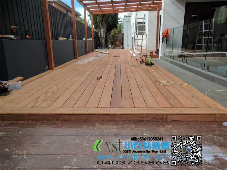 墨尔本 户外地板 140X19 merbau decking 游泳池盖板 龙骨140X45 treated pine 无底座 4面包边处理 11米长,我们保证一条直线,每个板缝隙5毫米左右。