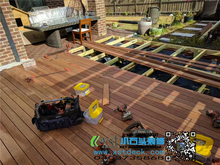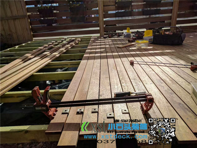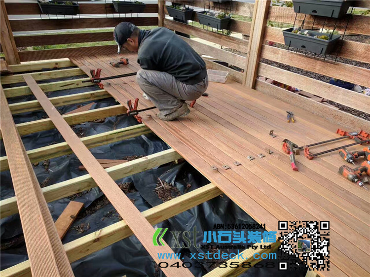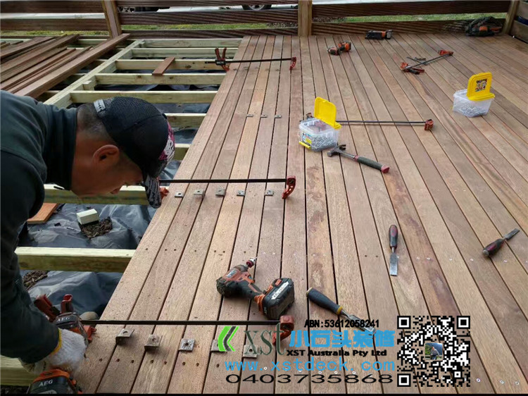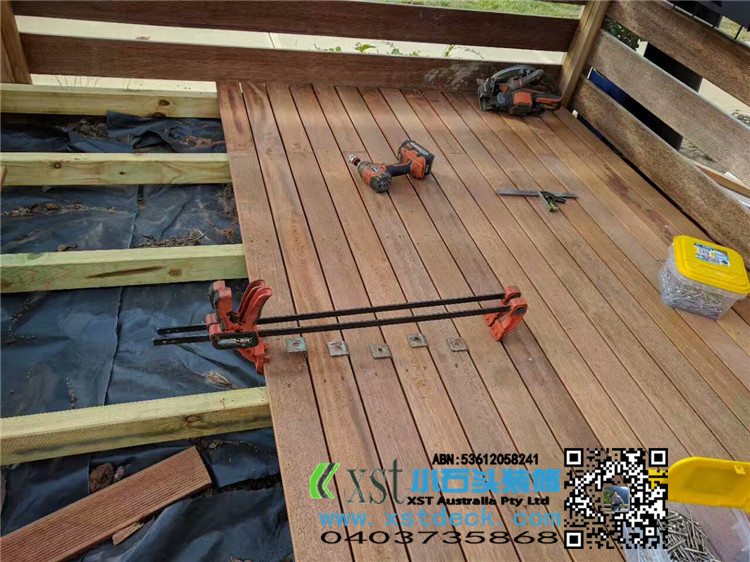 墨尔本 户外地板 merbau decking 90mmX19mm 每一张板间距,保持5mm左右,用不锈钢螺丝沉头锁