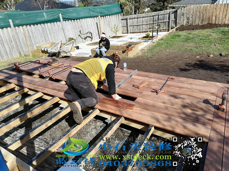 墨尔本户外大型凉棚 pergola,户外地板decking,玻璃围栏,拉钢丝扶手。