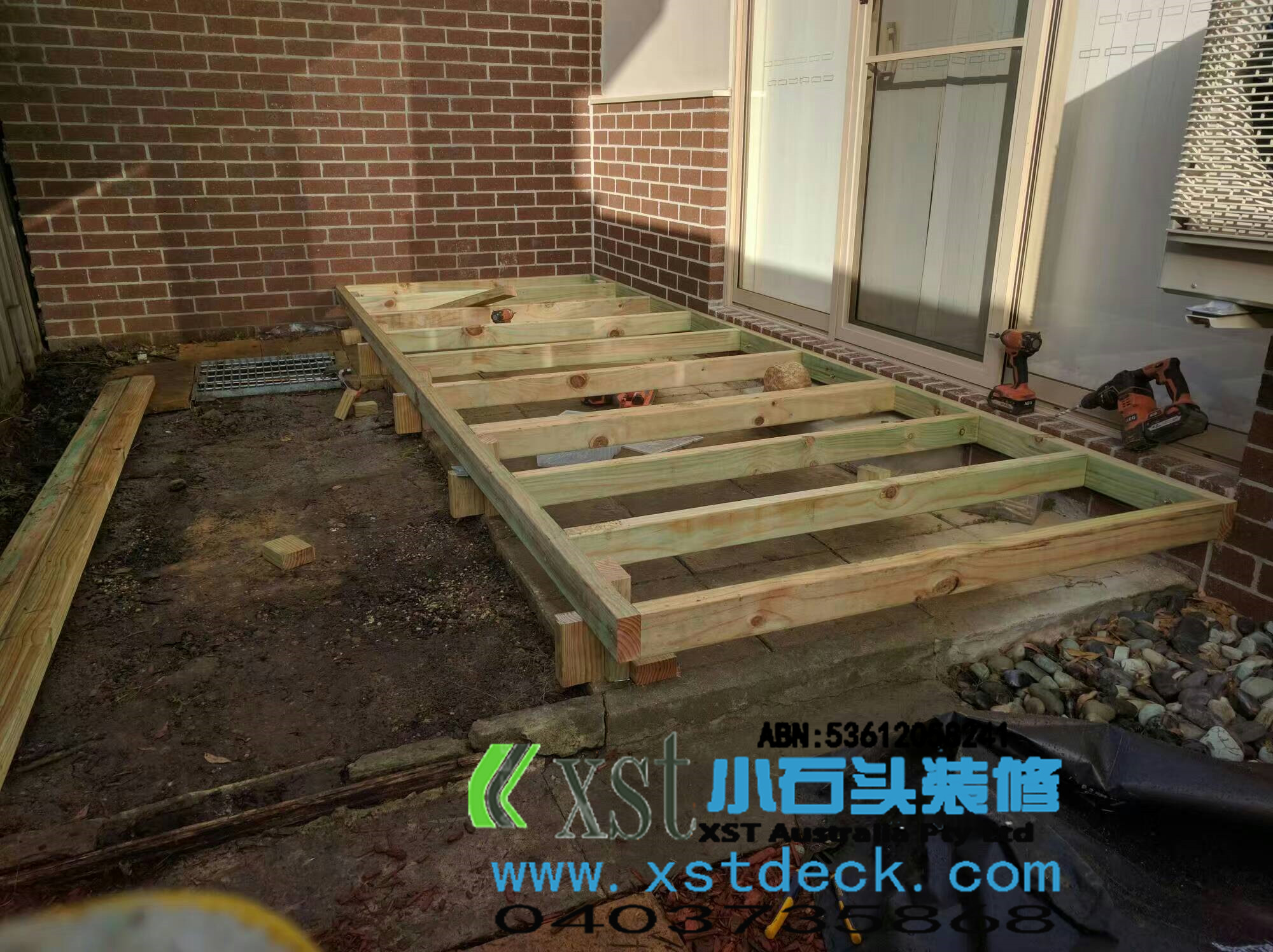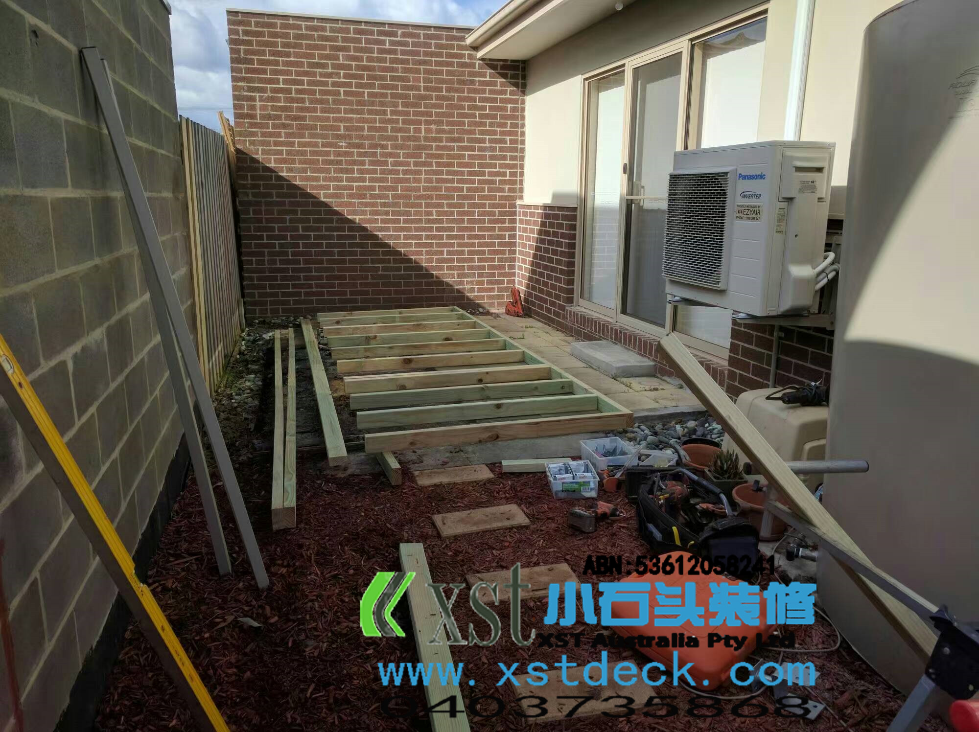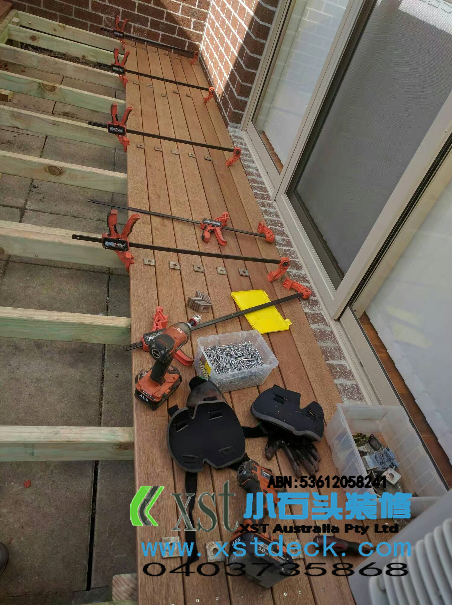 墨尔本 decking 13平户外地板 decking 楼梯,每个decking板间的缝隙,我们都控制在5毫米左右