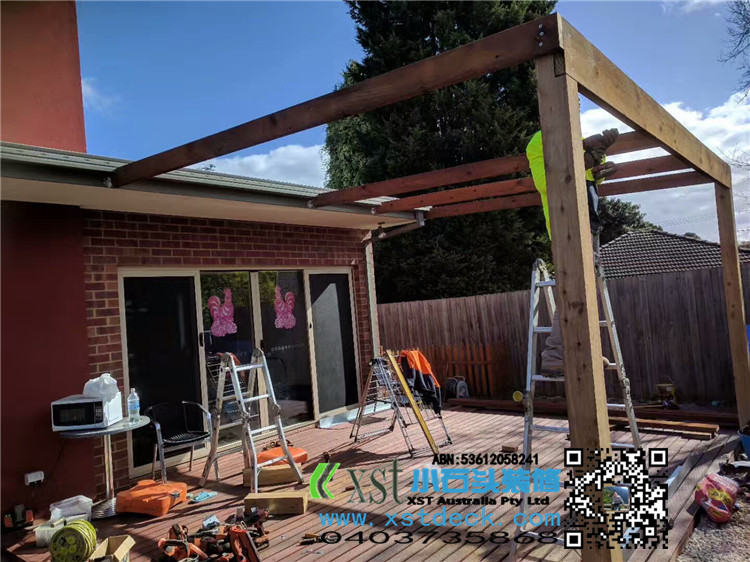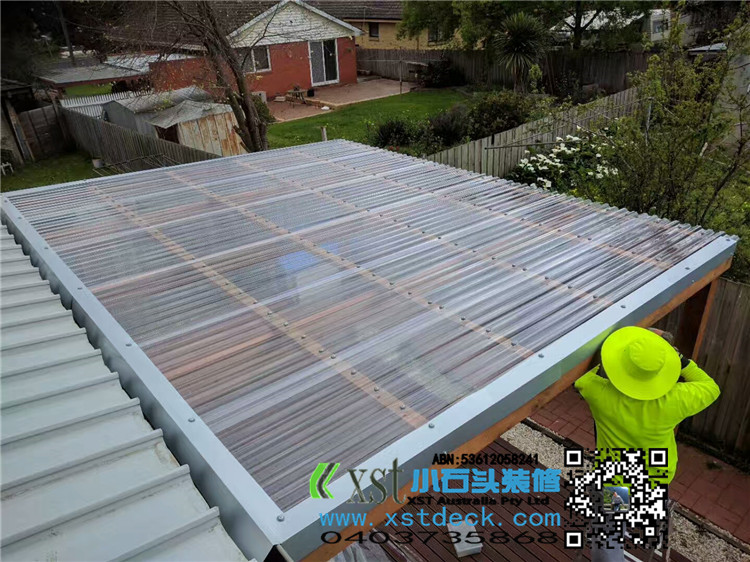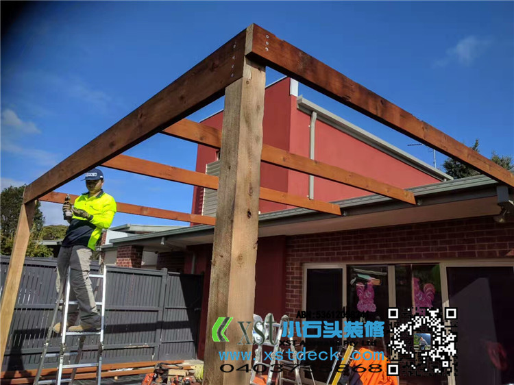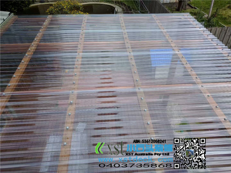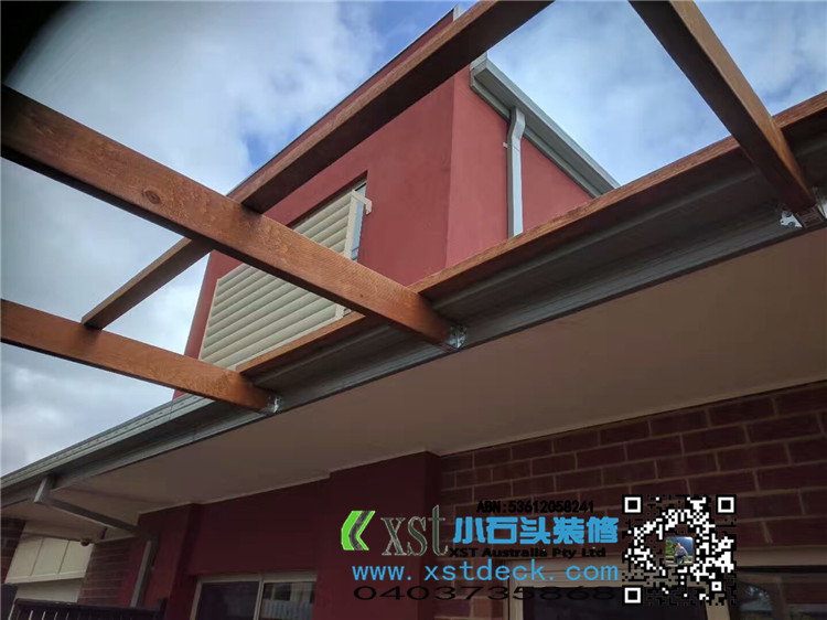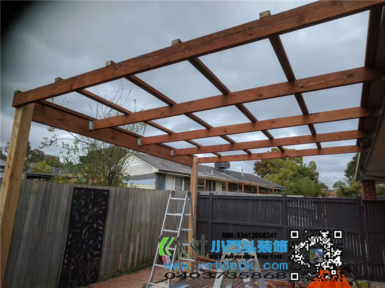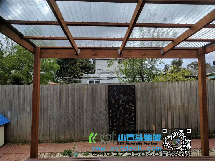 墨尔本 凉棚 雨棚 pergola 4.2X4.2 双cypress posts125X125柱子 decking色油漆 透明顶