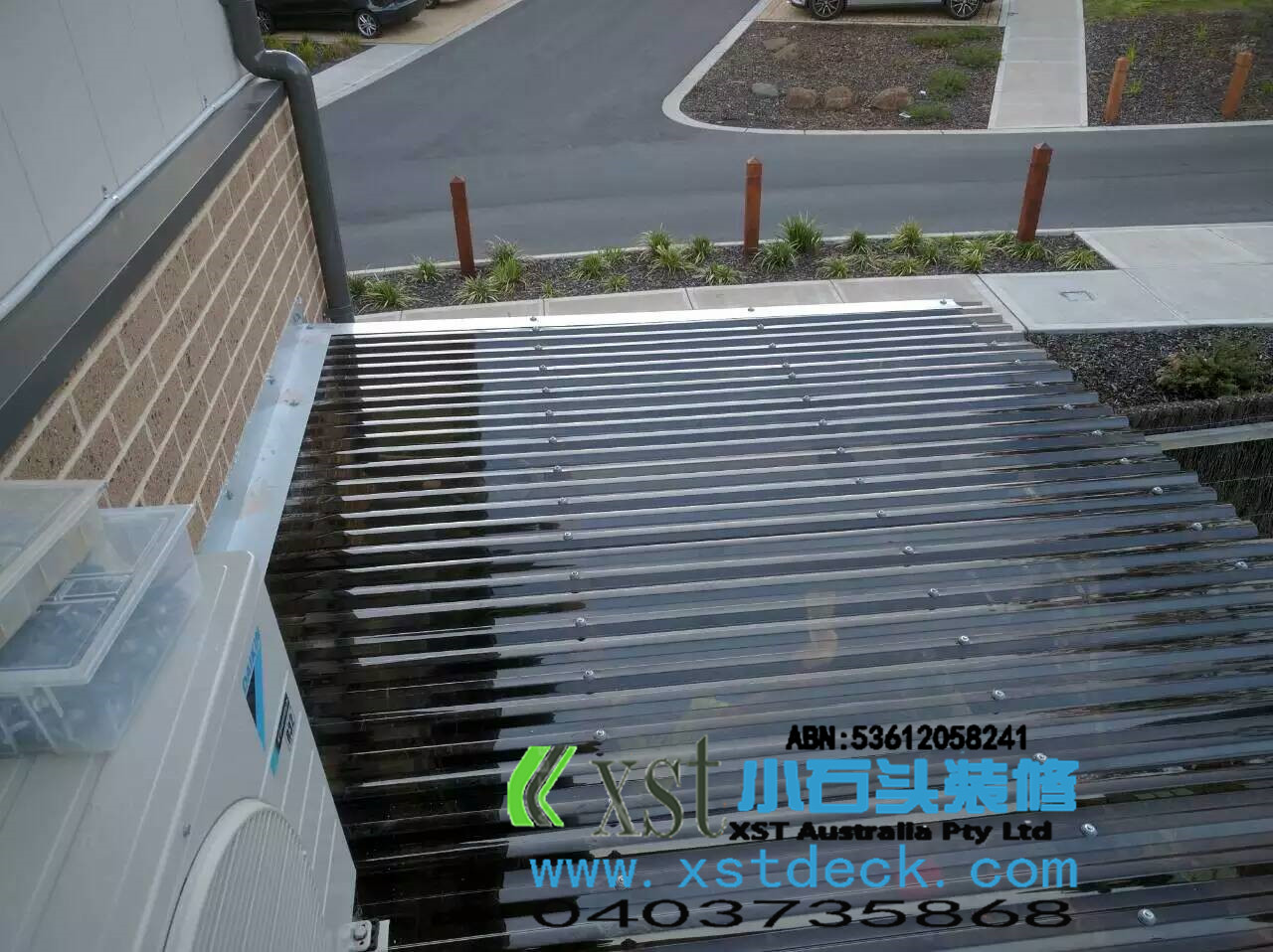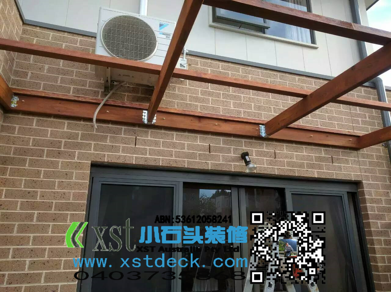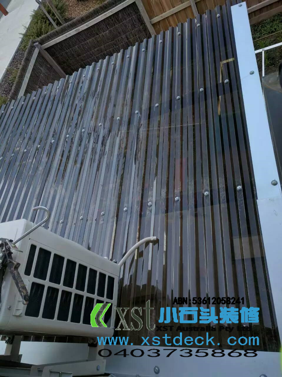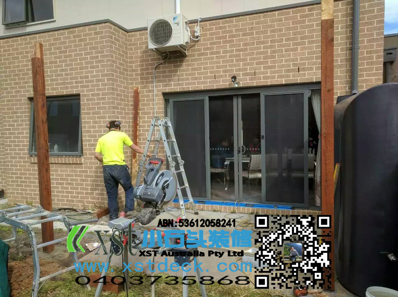 墨尔本pergola 8平方凉棚3.7米跨度,三面L型铁皮包边,防水处理,油漆保护。