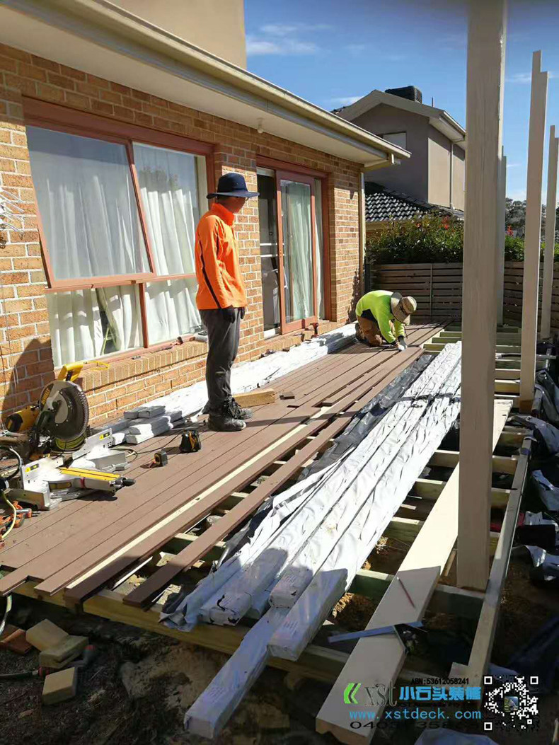 澳大利亚墨尔本 户外地板 塑木3m*8m 免油漆保养 不锈钢螺丝锁板 青灰色花园鹅卵石,灰色300m*600m方砖