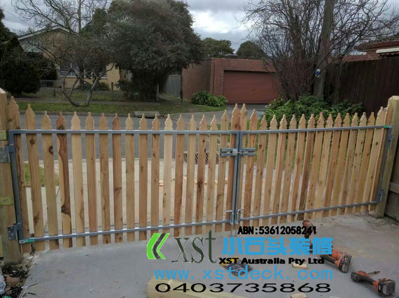 墨尔本东南区前院15米1.05-1.2高围栏。picket,3.5M双开门铁框架。