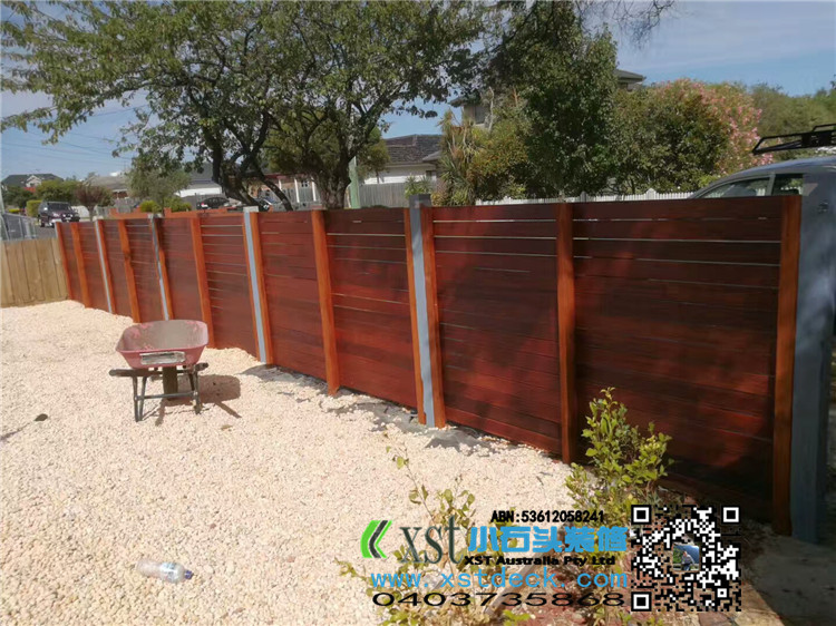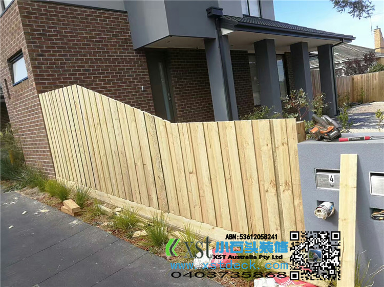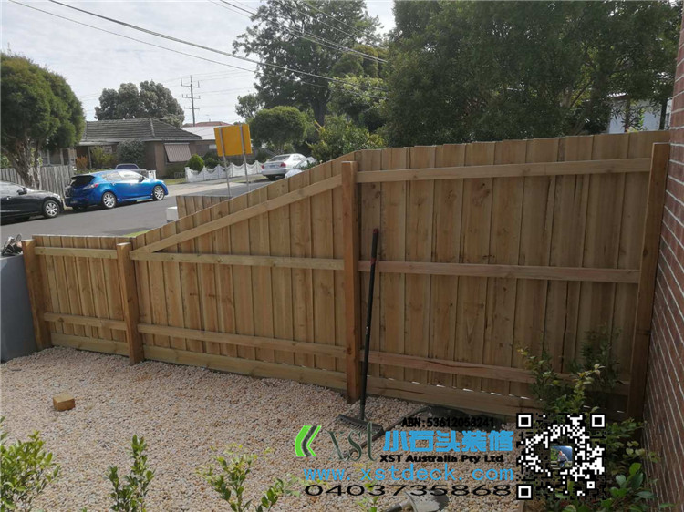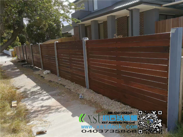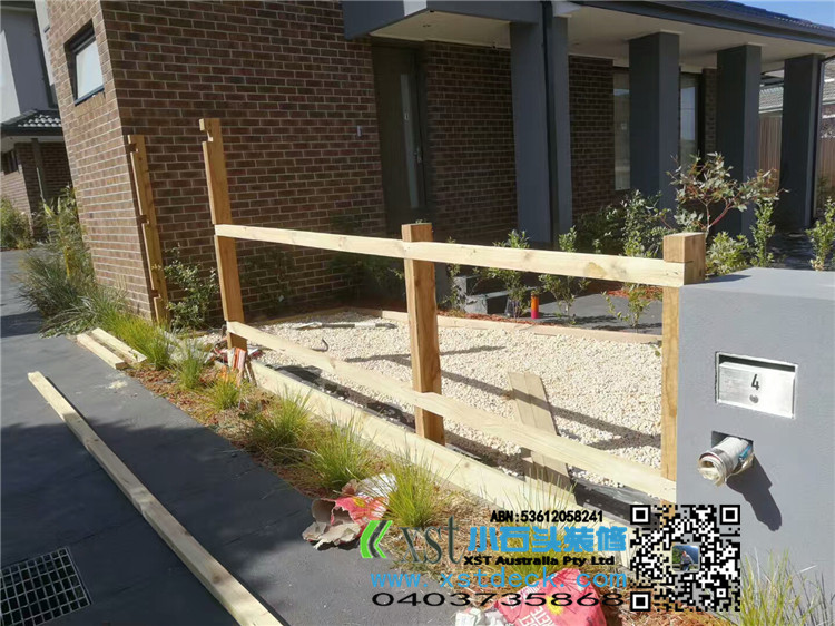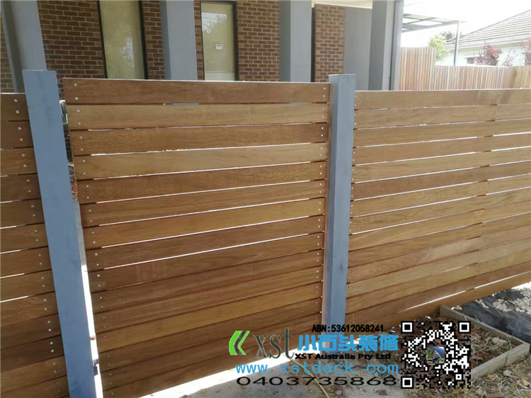 墨尔本 前侧院1.8m高普通围栏,前面merbau decking 横向围栏 一体1.2宽木框架小门 刷decking 油