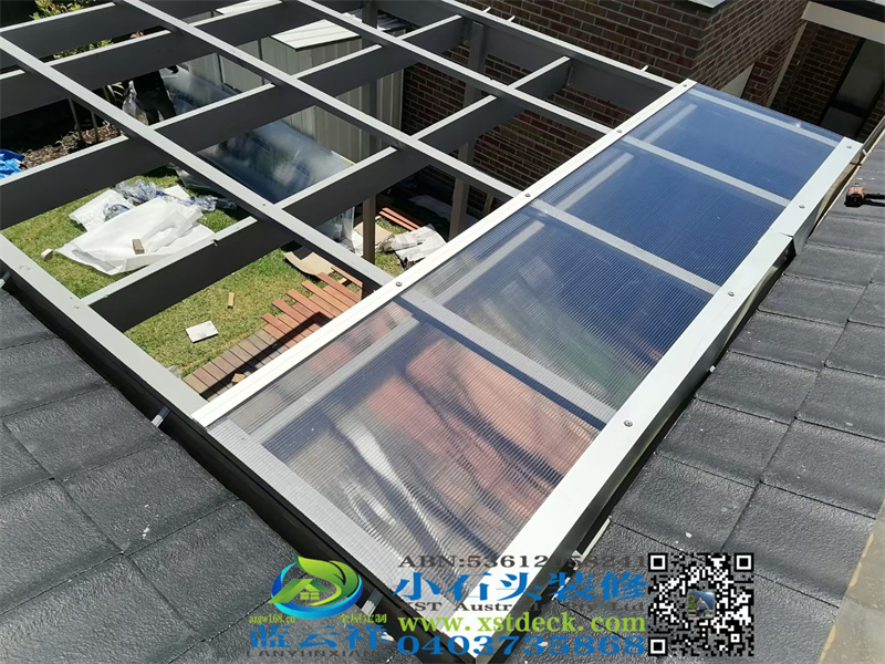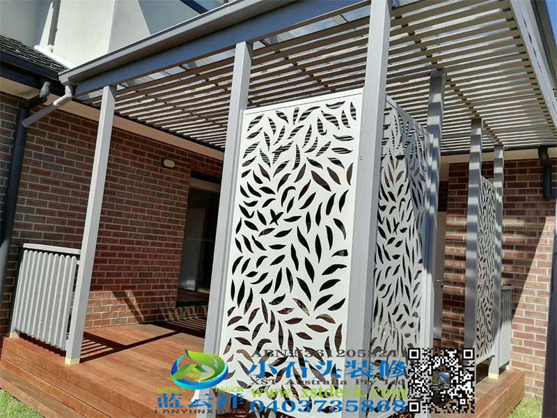 澳大利亚墨尔本平顶凉棚,屏风,顶部镂空木条掉顶。