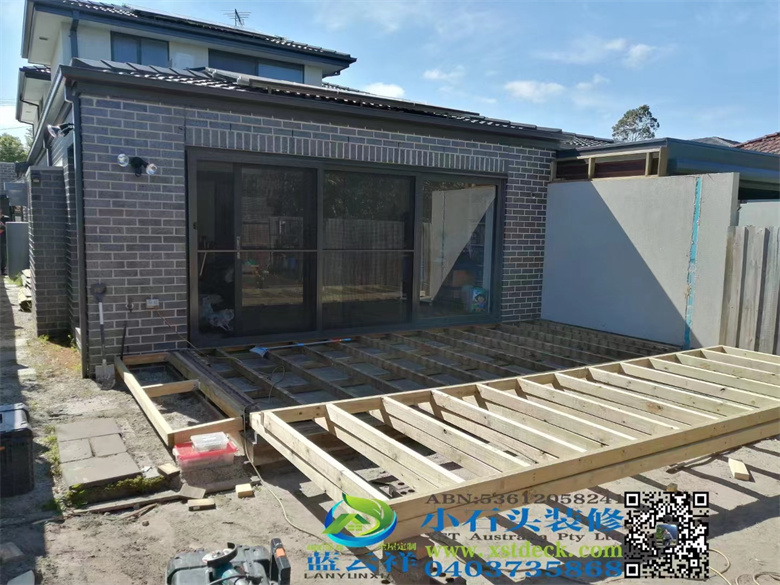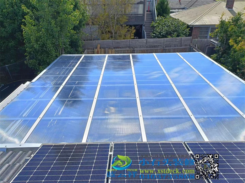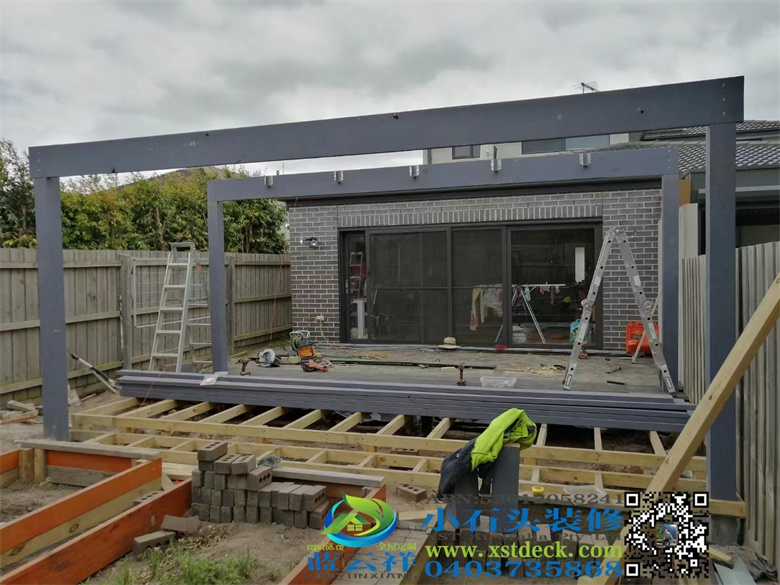墨尔本 户外凉棚56m,pergola,雨棚,平顶塑料瓦,户外塑木140mmx22mm空心地板,decking