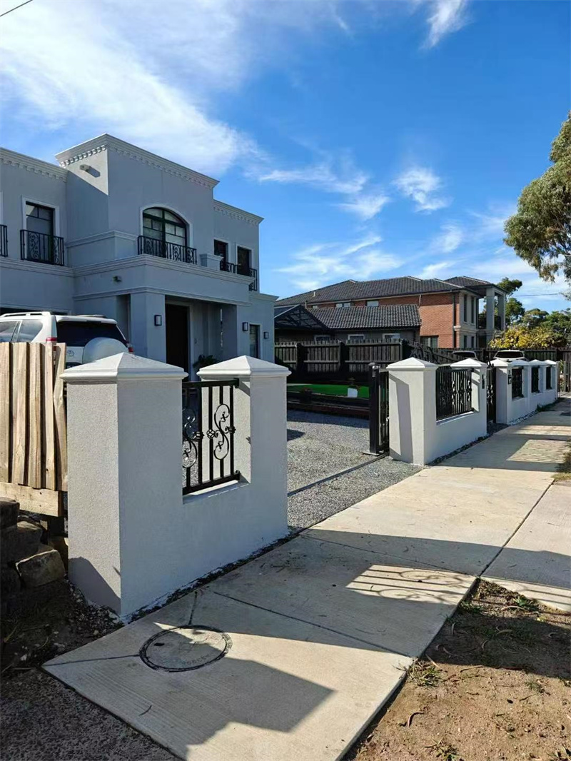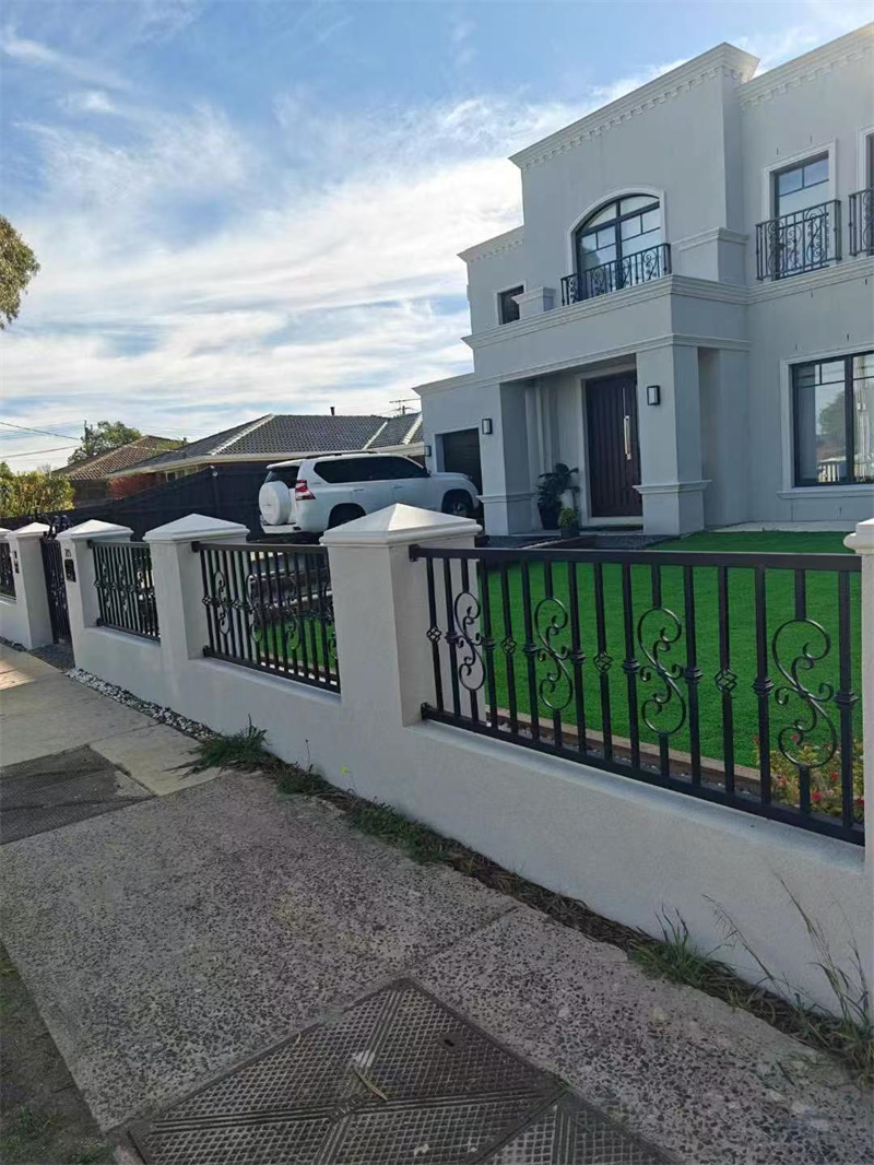 Melbourne courtyard renovation custom brick wall+wrought iron fence+electric sliding door to create a safe and dignified entrance ceremony